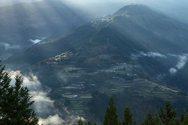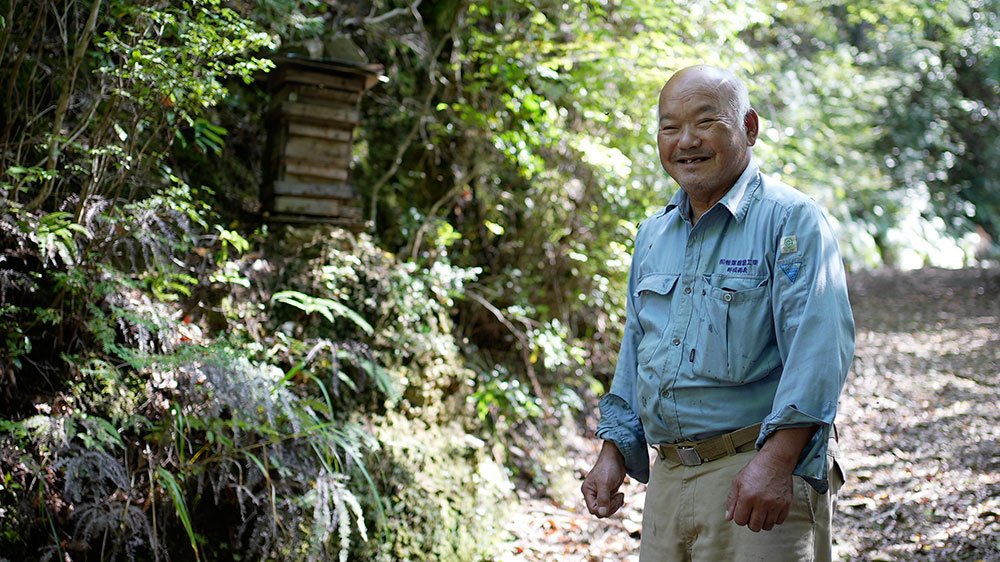 ここは、九州の宮崎県「椎葉村」。険しい山々がつながる九州脊梁山地に位置し、岐阜県白川郷、徳島県祖谷に並び、日本で最後の秘境と呼ばれる地だ。平家落人伝説も残り、毎年11月になると椎葉平家まつりが開催され、日本中から多くの旅人が訪れる。そんな奥深き“椎葉村”で、ハチミツづくりに力を注ぐ満(みちる)工房代表「椎葉満義」さんのハチミツ取りに同行した。